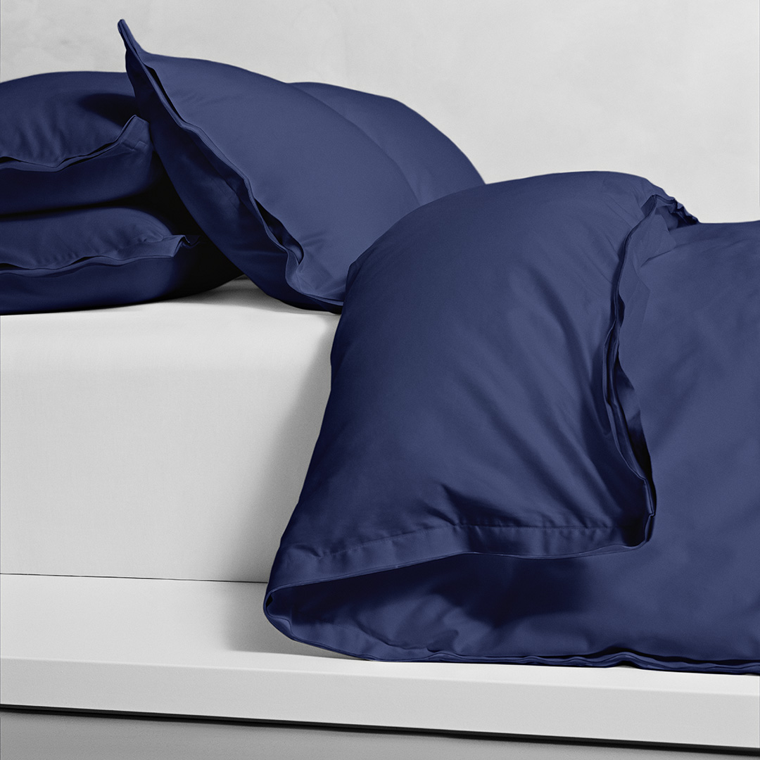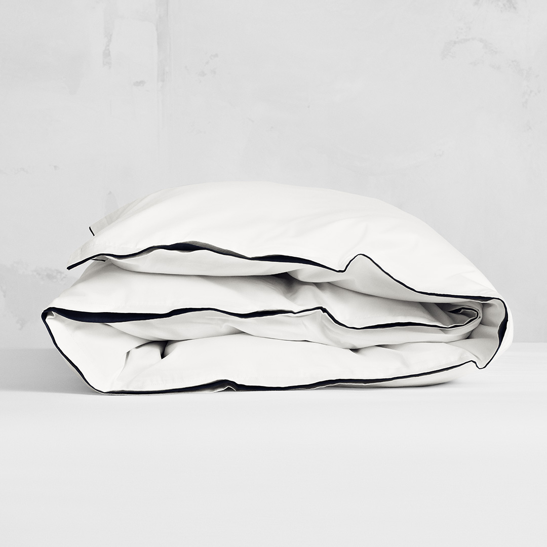 Den karaktäristiskt eleganta linjen ger Barton ett djup och en stilig inramning. Det handsydda inslaget i kantningen, är både komplicerat och tidskrävande att tillverka, och ger varje sovrum en skärpa och en vacker kontur. Barton finns i Ogland White, Mist Grey och Deep Blue.