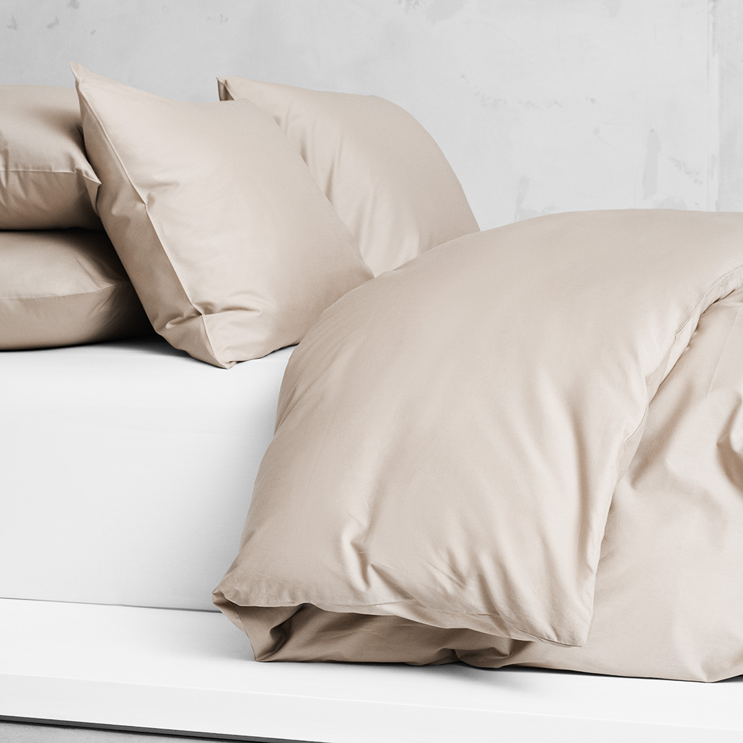 tillverkas i Percale och är krispig och svalkande mot huden. Vävens struktur gör att tyget andas och den extra tunna tråden ger en släthet som gör att percalen blir både slitstark och lättskött.